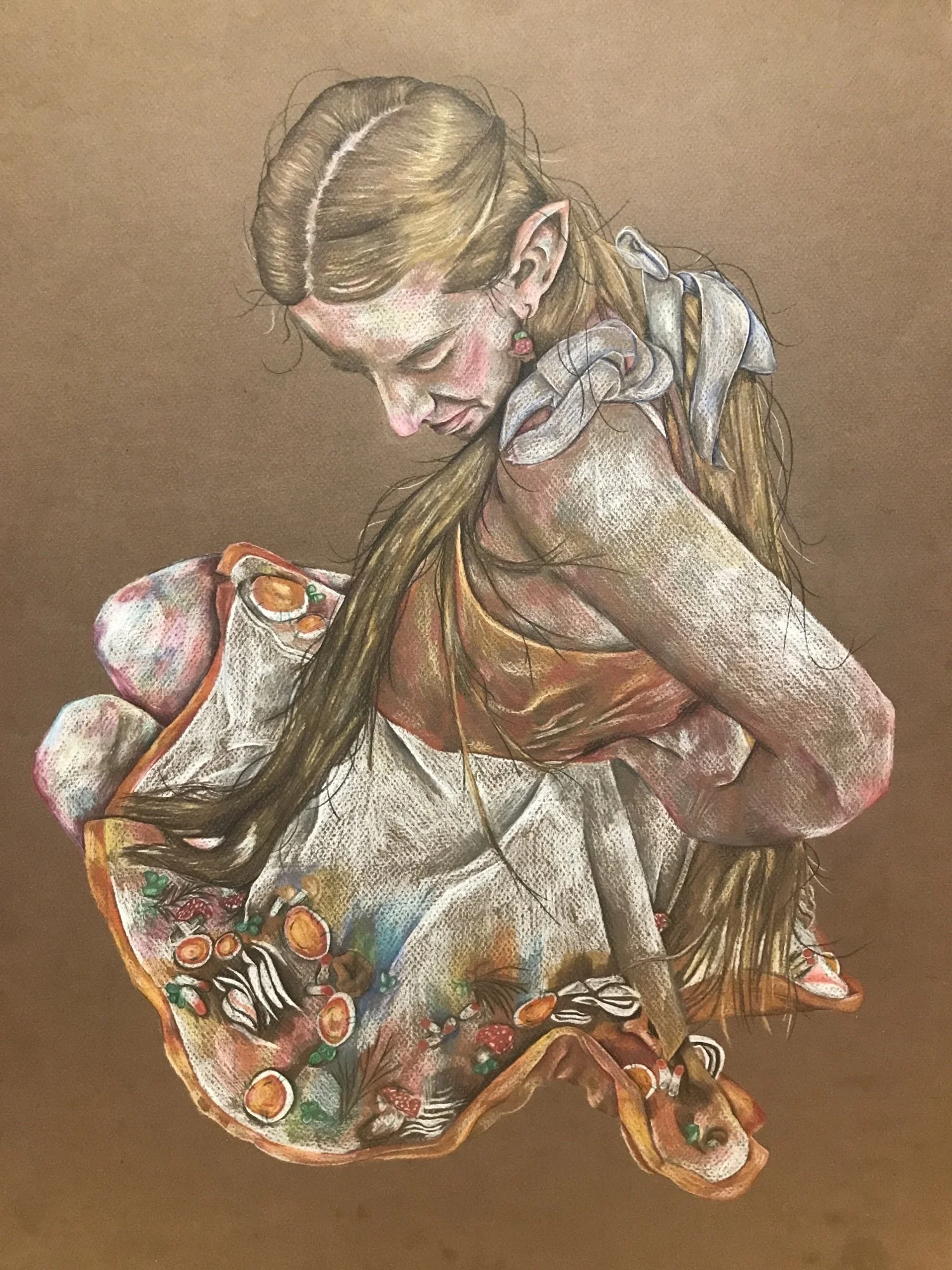 My degree in Design for Costume and Performance has influenced my art in terms of spatial awareness (set design) and the way clothing drapes and folds on people (costume design) which has been invaluable in composing ideas. I also enjoy merging these two aspects of my creative life; there's so much crossover between my course and what I do in my free time such as scenic painting for sets, modelmaking, styling clothes and drawing costume designs.